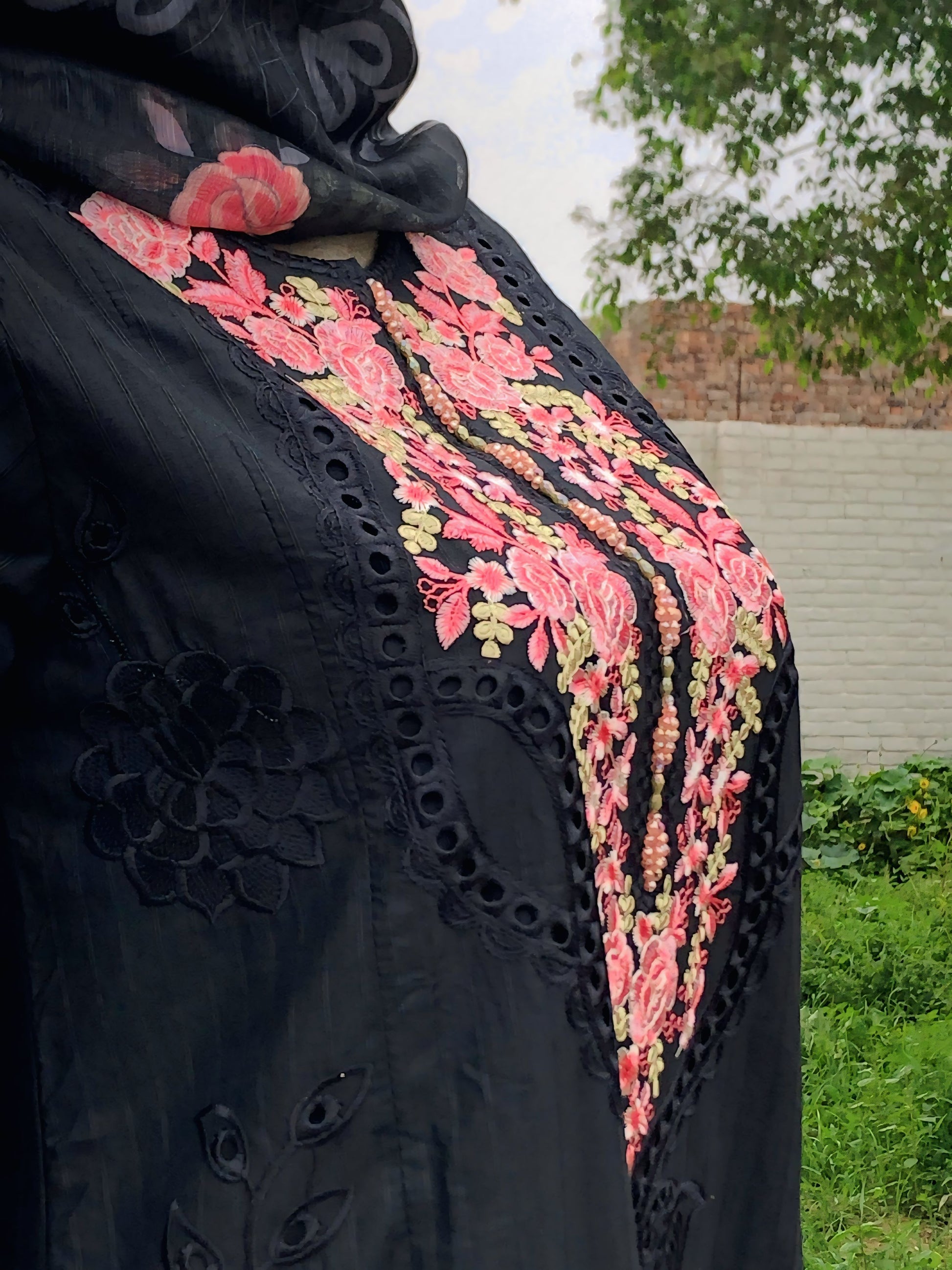 Bring freshness to your wardrobe with this pastel lavender 3-piece cotton suit, designed with delicate mirror cutwork, floral thread embroidery, and a soft digitally printed dupatta.