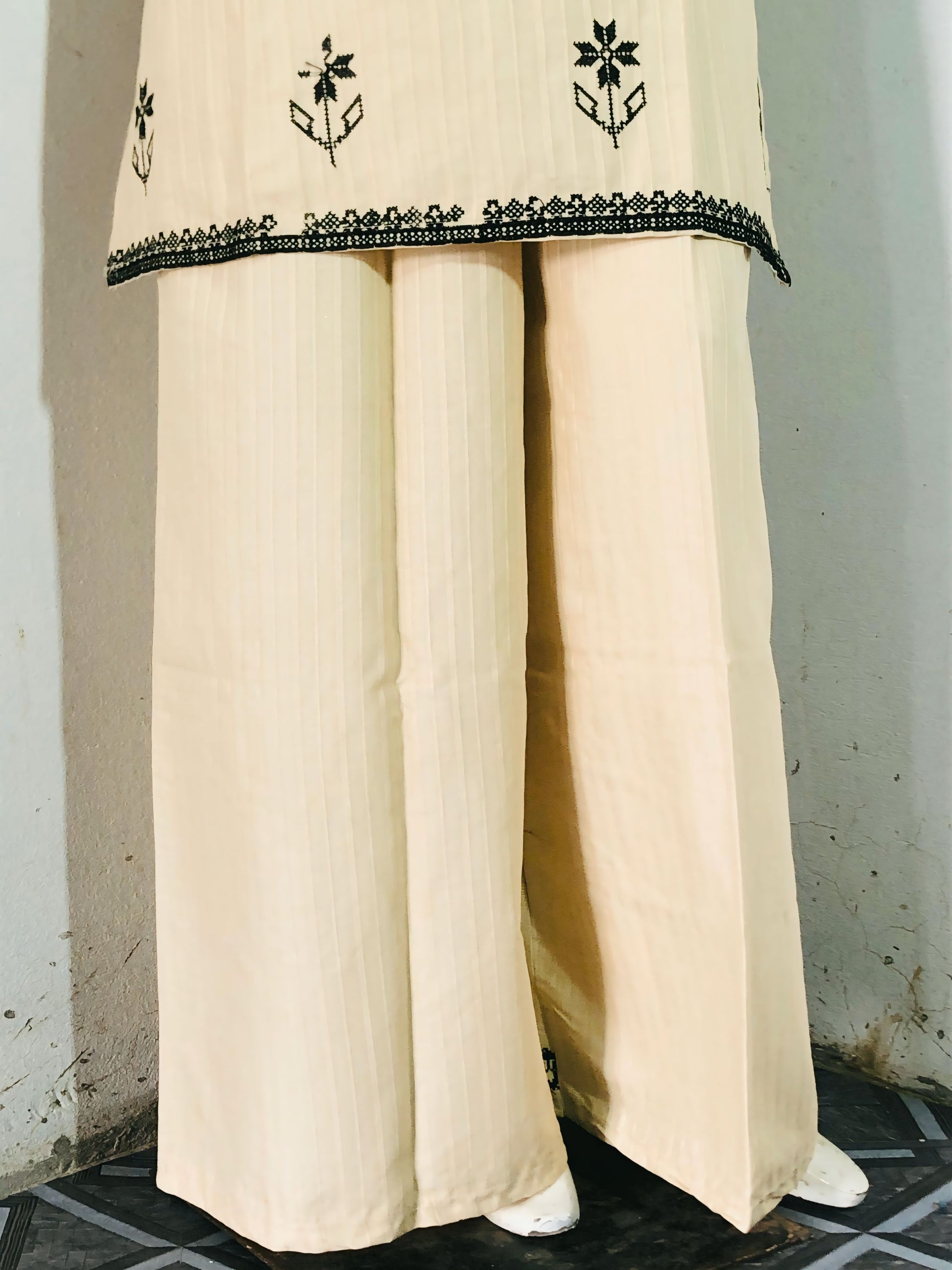 The matching trouser comes with flapper embroidery, giving the entire outfit a graceful, traditional finish.